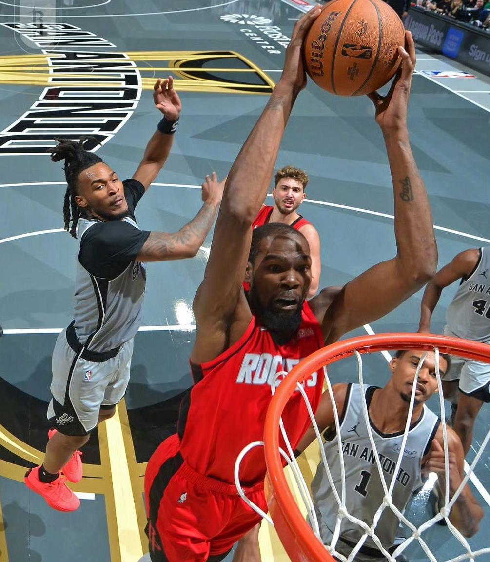 第二节开打文班亚马登场,火箭这边杜兰特也在。文班隔扣卡佩拉,哈珀突破抛投+转换,火箭这边谢泼德、阿门内线也有所斩获比分追到35-45,谢泼德强投三分不中,文班到内线制造了卡佩拉犯规两罚全中,谢泼德再试三分这次命中分差来到个位数,文班单挑杜兰特中距离把握住。双方主力球员慢慢回到场上,尚帕尼回来三分手感不减54-41分差回到13分,谢泼德中距离咬住比分,火箭始终无法有效缩小分差,场面始终被马刺掌控,杜兰特内线功框造成犯规,6分34秒进暂停。回到比赛杜兰特两罚全中,文班过来接球就是中距离拔中,凯尔登转换造成犯规两罚全中分差还是13分,文班亚马下场休息,史密斯连得4分分差回到10分马刺暂停。一回来科内特轻松空接吃饼,尚帕尼底角三分还在一波5-0分差回到15分,节末文班重新马刺始终维持两位数领先,半场打完70-60领先火箭10分!